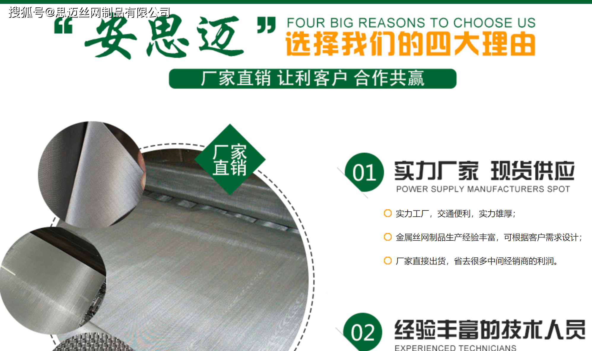 安思邁高端環(huán)保絲網(wǎng)產品倡導者-專注于耐高溫耐腐蝕系列絲網(wǎng) ,安思邁品牌絲網(wǎng)是一家專門生產耐高溫金屬網(wǎng)系列以及耐腐蝕金屬網(wǎng)系列產品的廠家,安思邁始終堅持產品第一,質量第一。主要產品有鐵鉻鋁網(wǎng)、不銹鋼網(wǎng)、鎳鉻絲網(wǎng)、蒙乃爾絲網(wǎng)、英科耐爾絲網(wǎng),鎳網(wǎng),銅網(wǎng),鈦絲鈦板網(wǎng)、哈氏合金絲網(wǎng)等稀有特殊類金屬網(wǎng)產品生產經驗,擁有專業(yè)的生產設備,技術力量雄厚,對生產實行規(guī)范化管理,對產品實行科學化管理,特殊規(guī)格可按樣品視圖紙制造。我們將不斷開發(fā)新產品、增加技術含量、擴大生產能力,降低生產成本、使之既能保證大批量定單的及時供貨,又可為多種小數(shù)量的客戶進行生產。在誠信雙贏的基礎上,憑借良好的企業(yè)信譽,穩(wěn)定的售中、售后服務,與更多的國內外客戶建立一種友好、愉快、長期的合作關系。